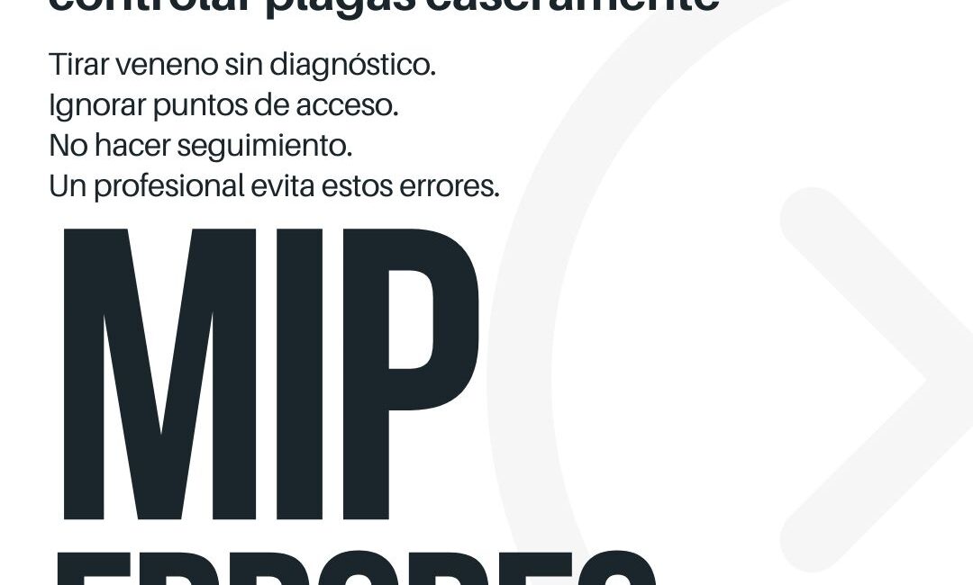 El control de plagas casero suele estar lleno de errores que aumentan los riesgos en lugar de solucionarlos. Tirar veneno sin diagnóstico, ignorar accesos y no hacer seguimiento son prácticas que no eliminan el problema y pueden incluso empeorarlo. La mejor alternativa es el Manejo Integrado de Plagas (MIP), aplicado por profesionales capacitados que aseguran resultados eficaces y seguros.